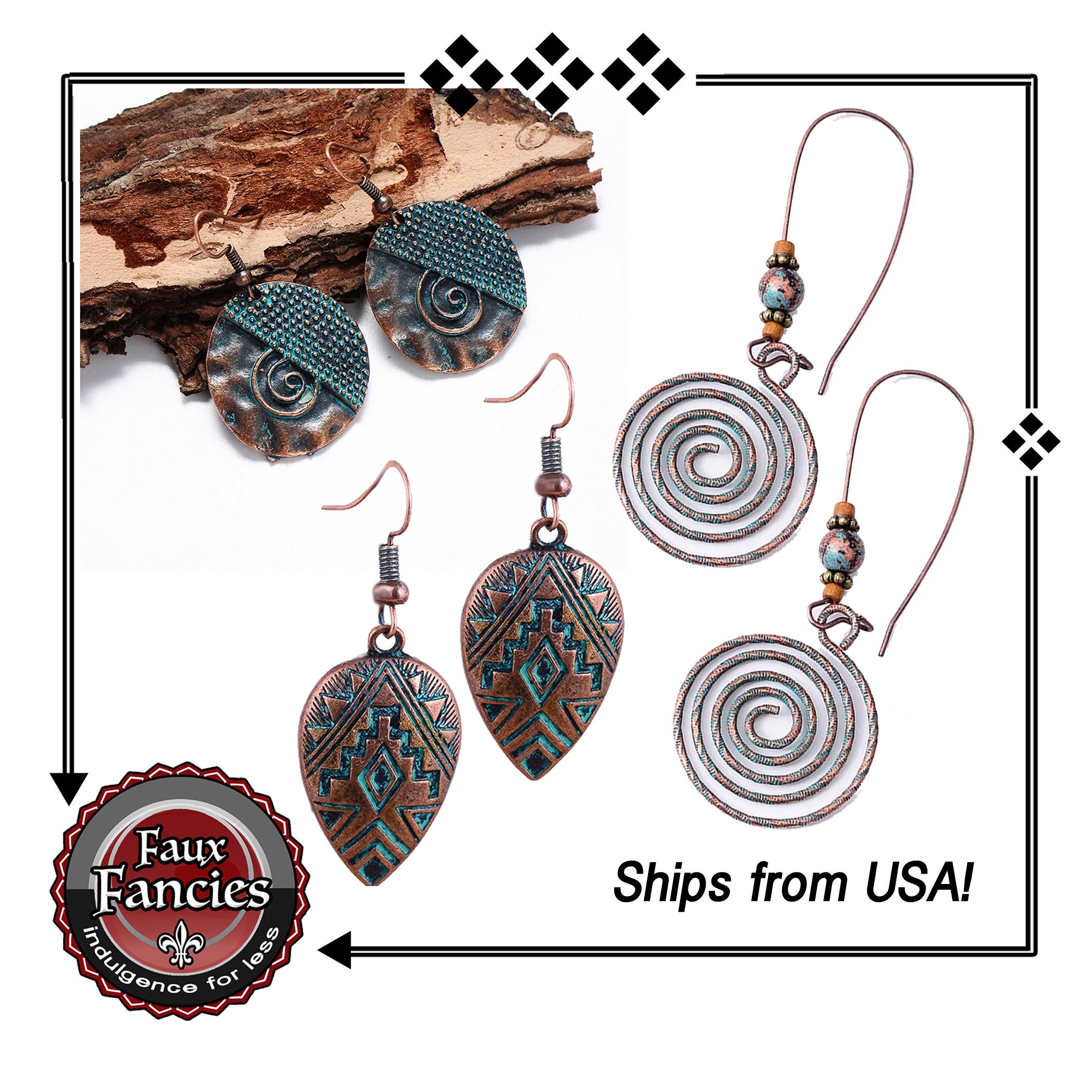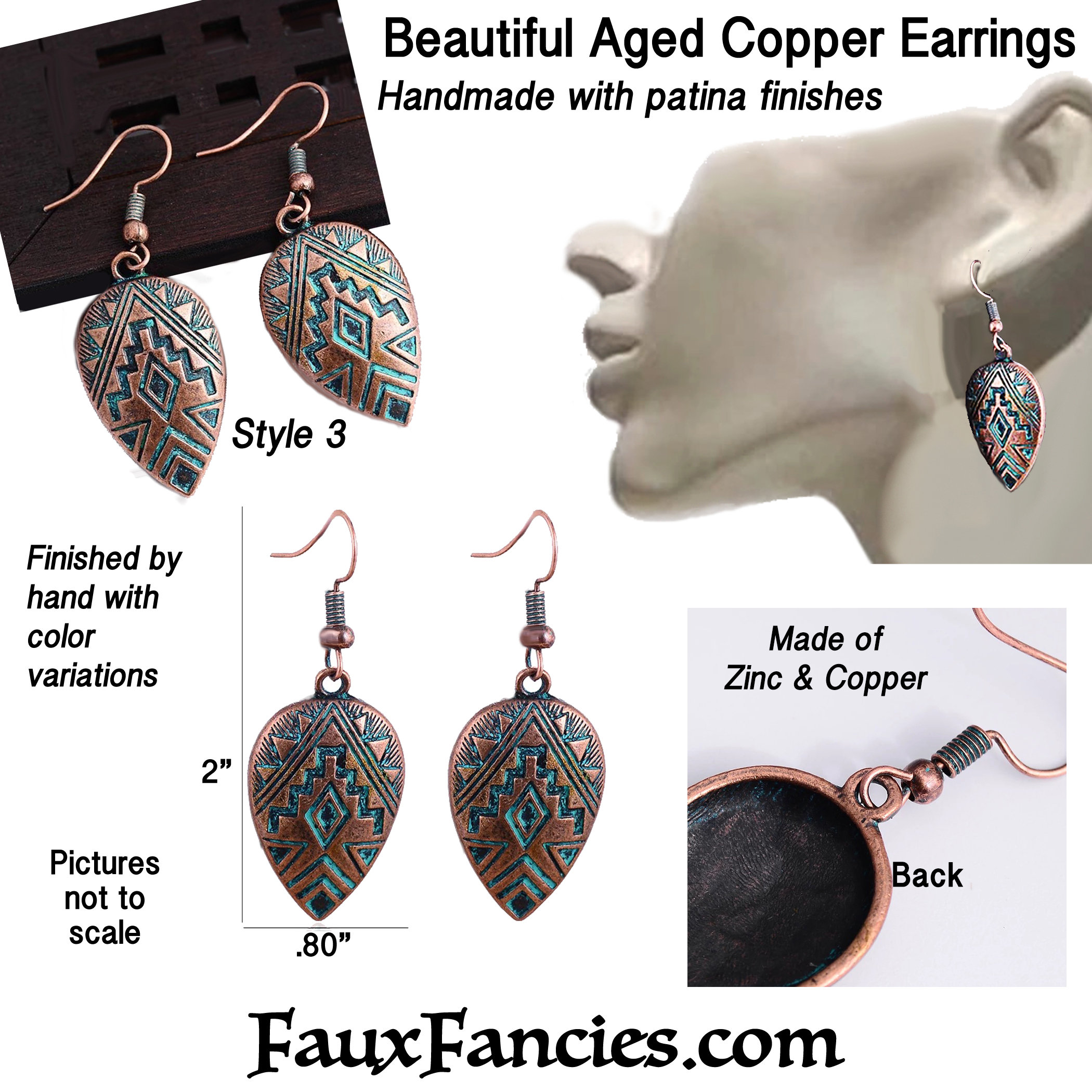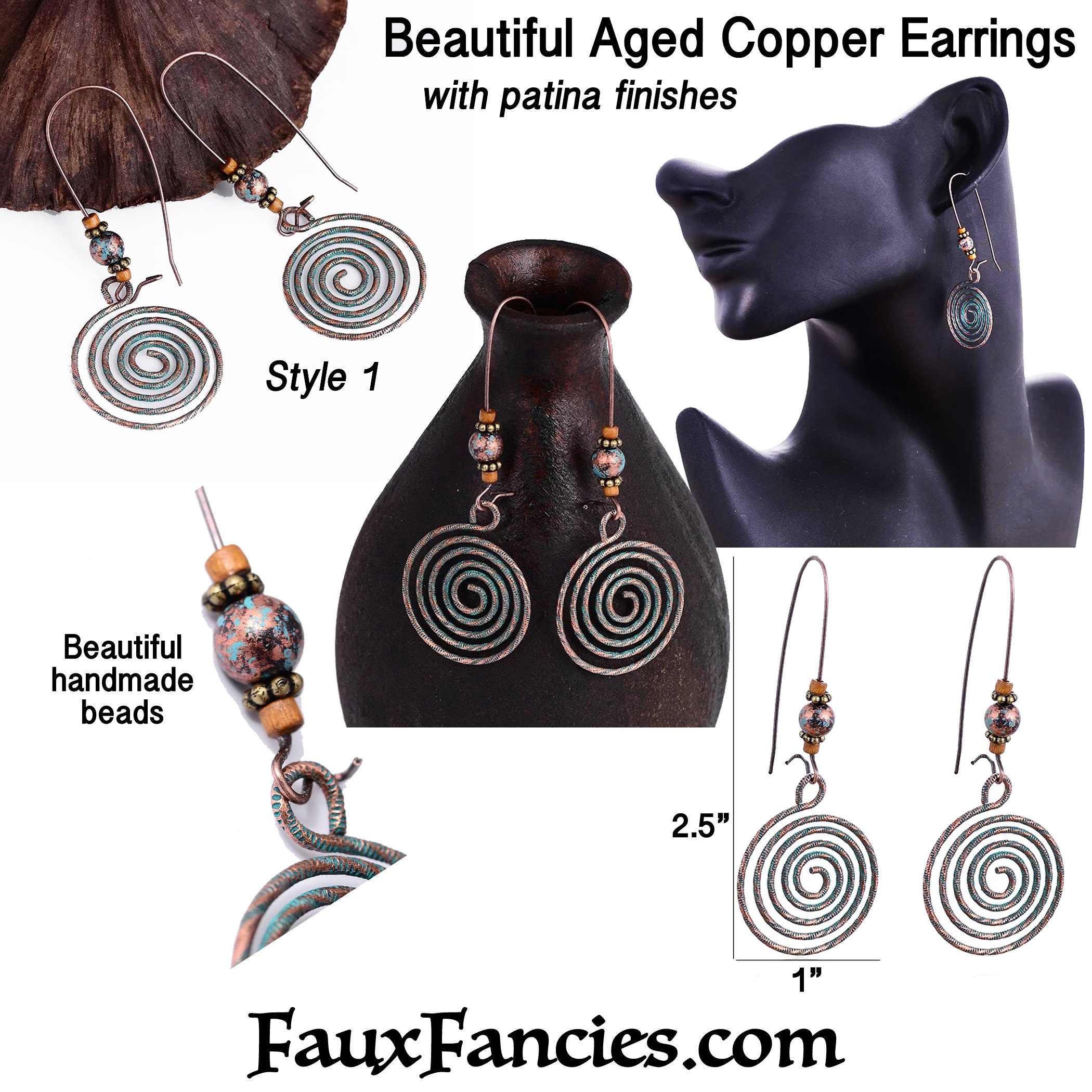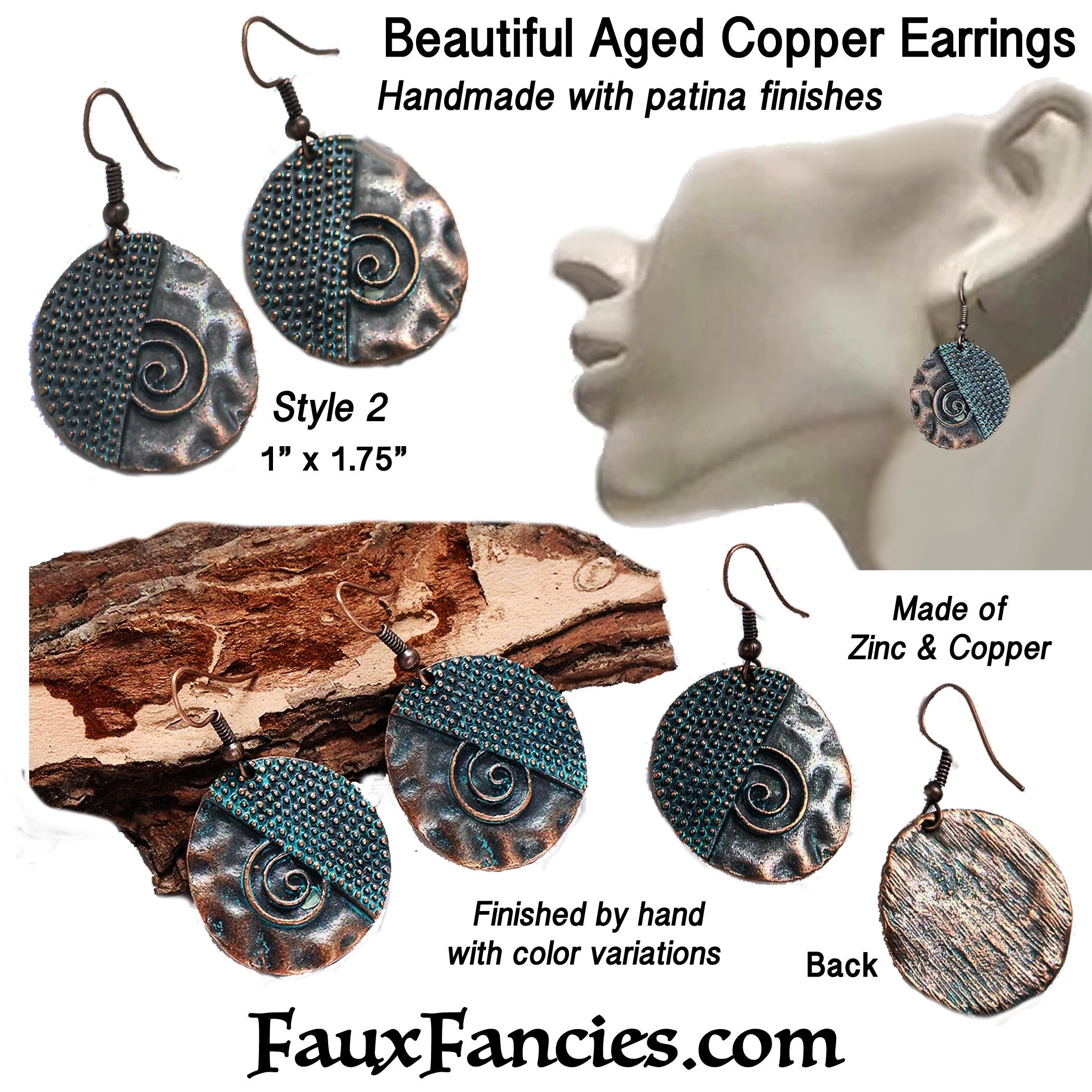 Super pretty AGED COPPER EARRINGS with patina accents