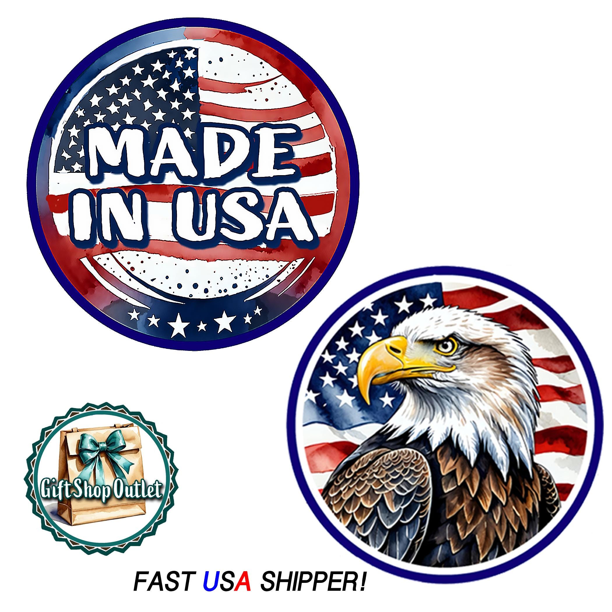OUR OWN DESIGNS - MADE IN USA or American BALD EAGLE with American flag