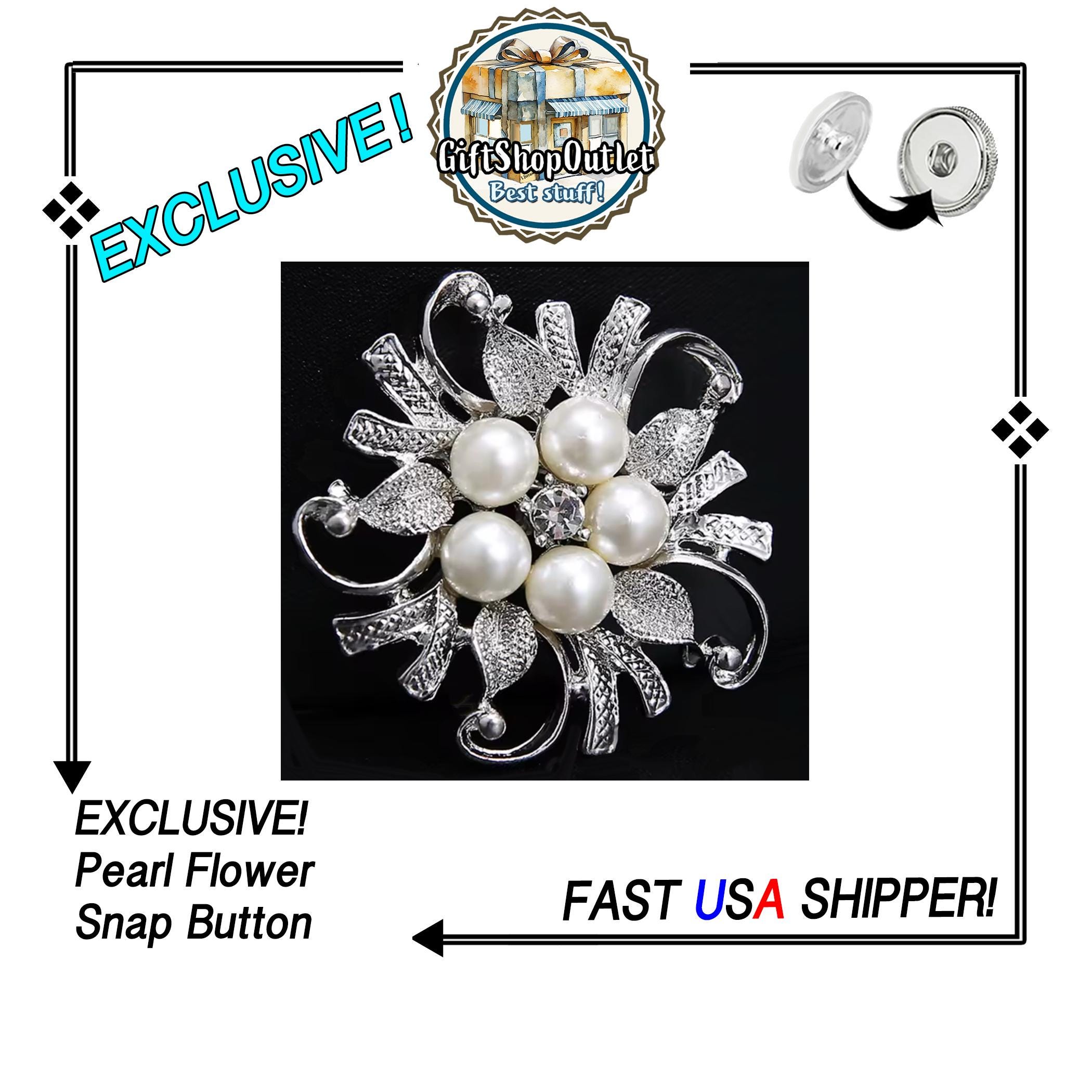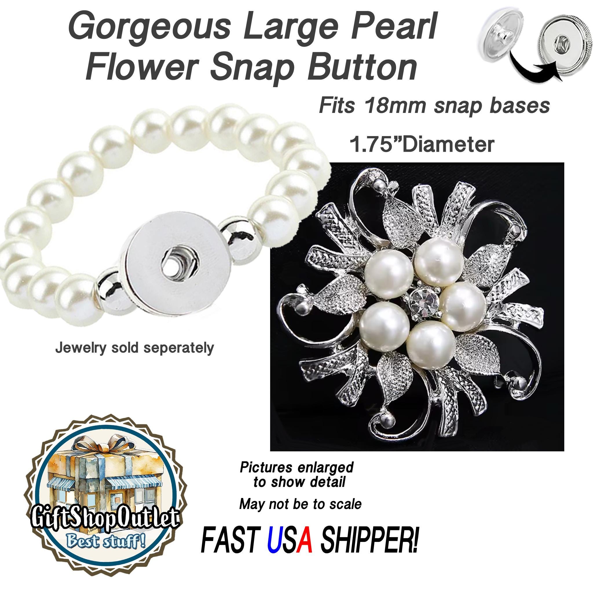 Beautiful, LARGE Rhinestone Faux Pearl Flower snap button