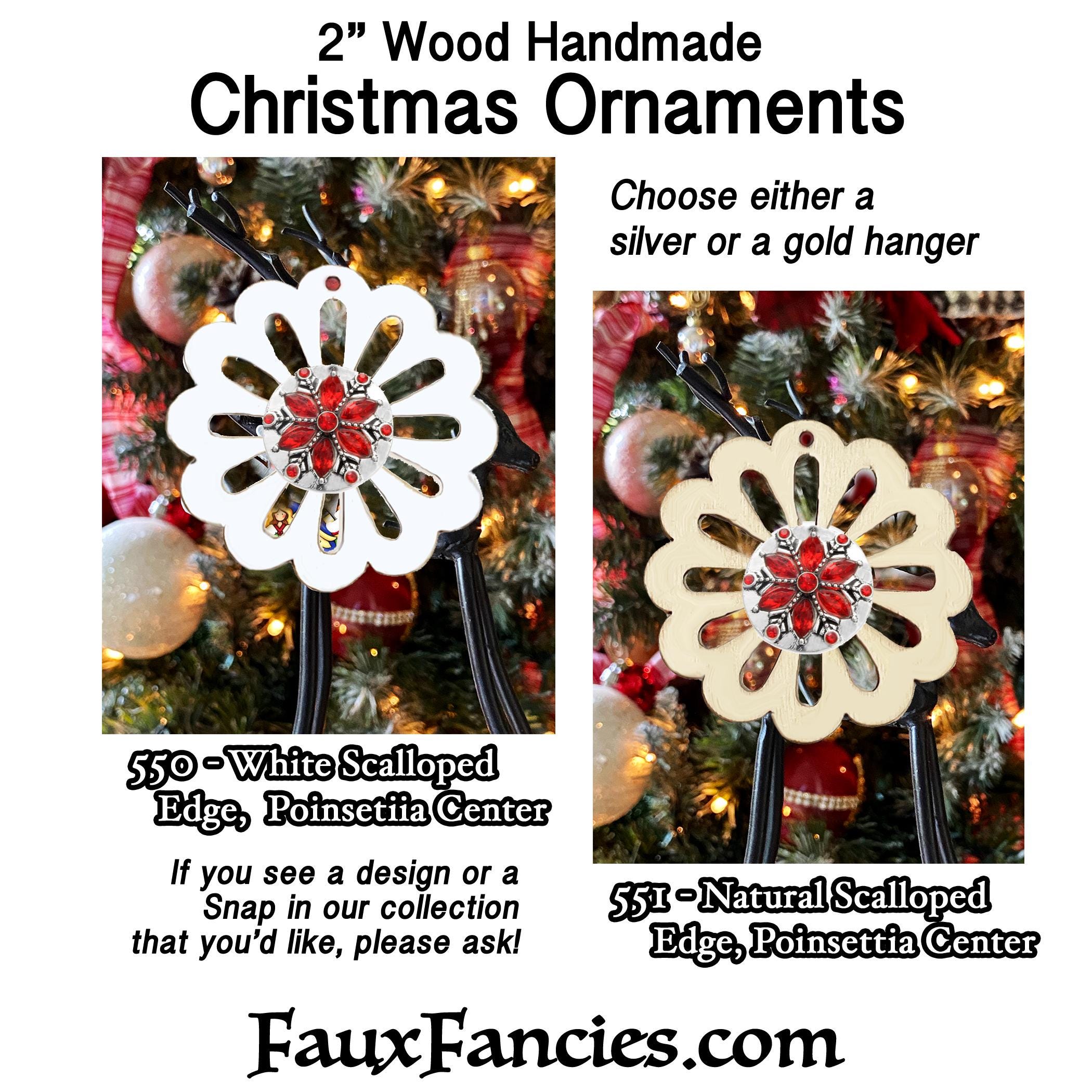 Handmade scalloped edge 2" ornament with poinsettia center