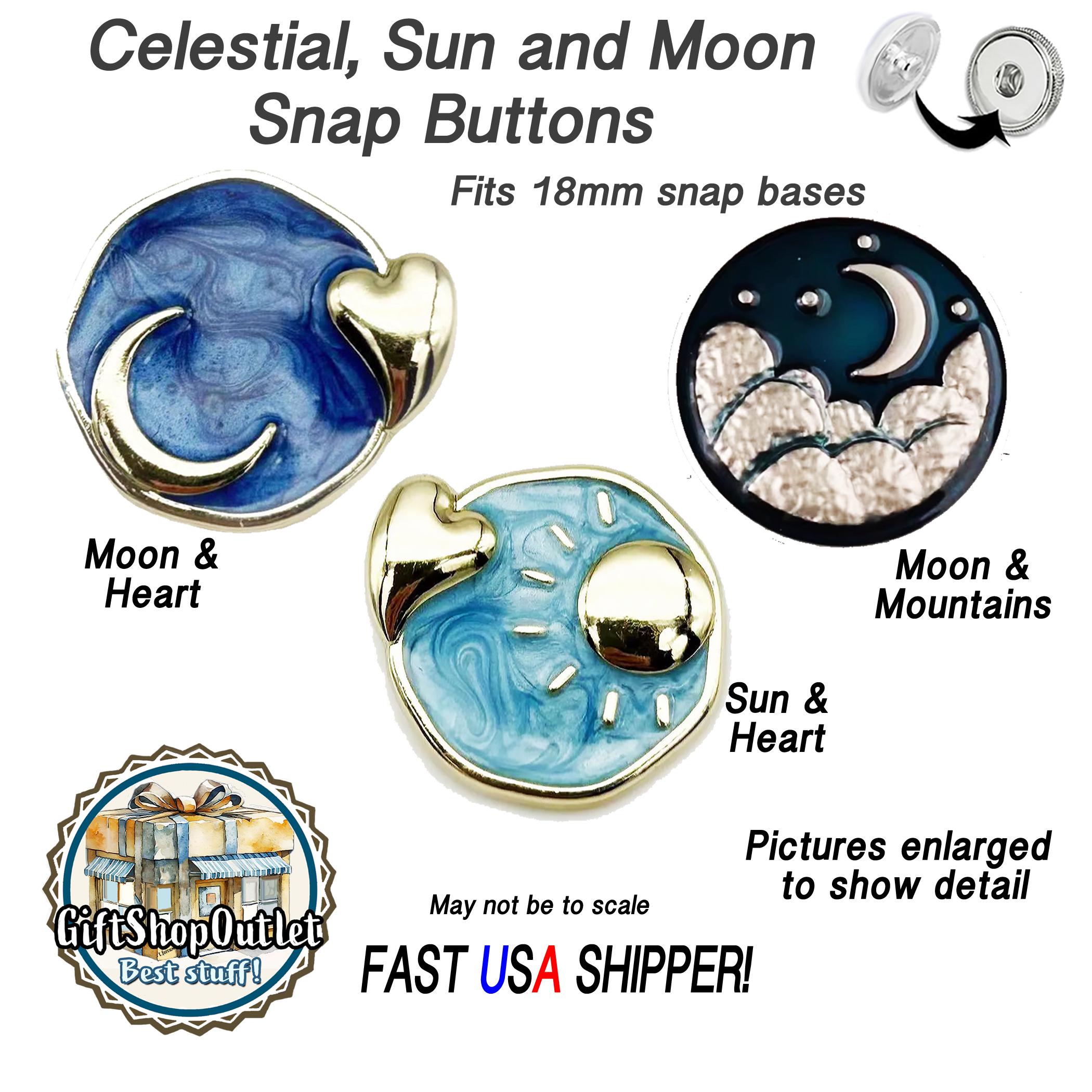 EXCLUSIVE! We create these beautiful stunning CELESTIAL, SUN, MOON SNAP BUTTONS in 3 designs. LIMITED STOCK!