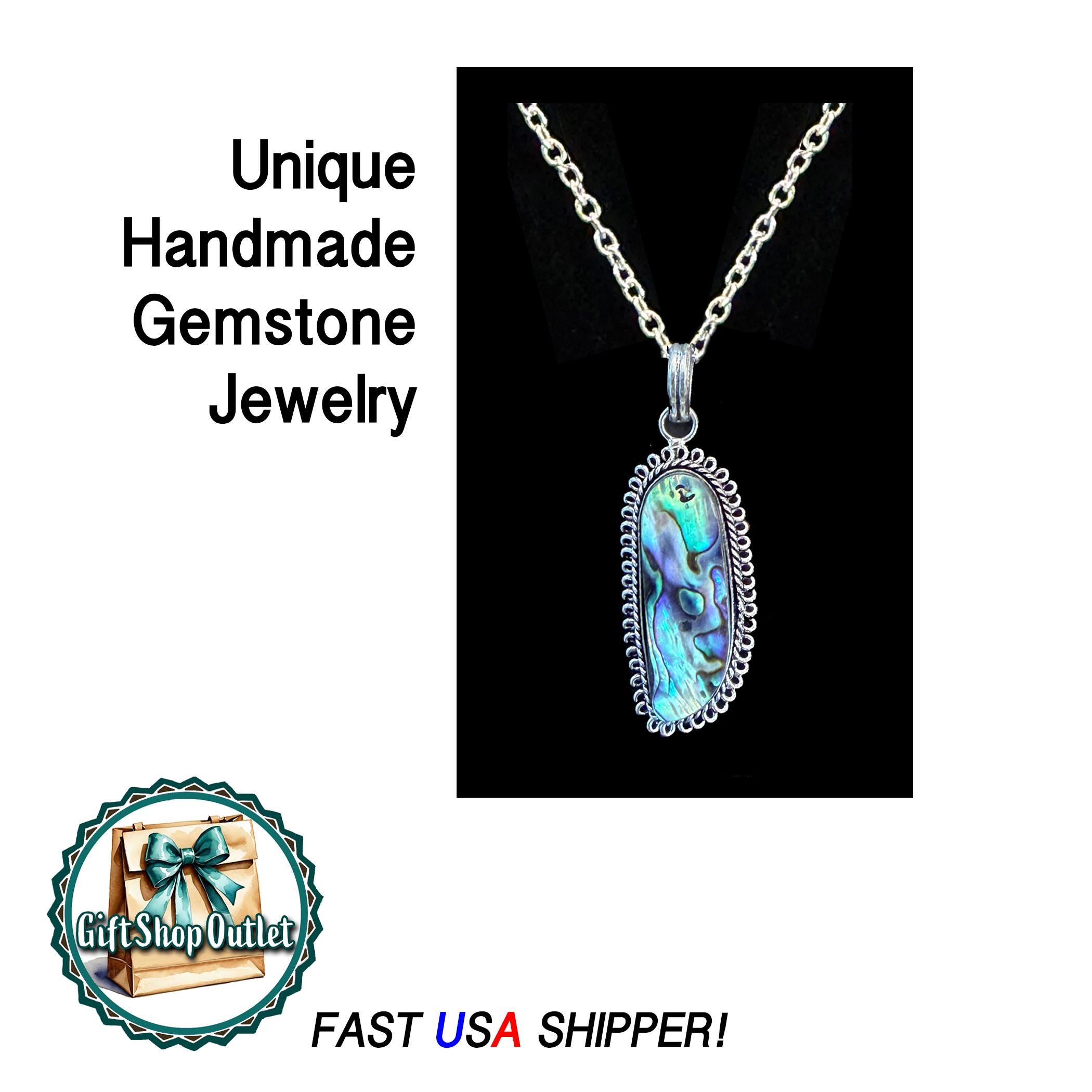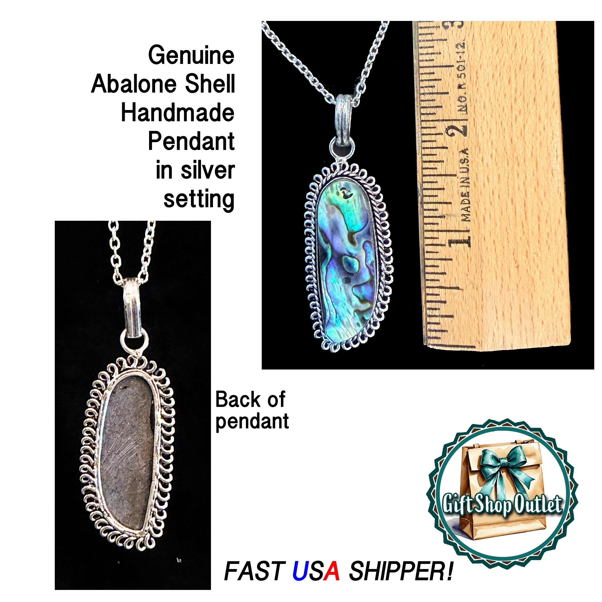Super pretty handmade GENUINE ABALONE SHELL PENDANT in silver setting
