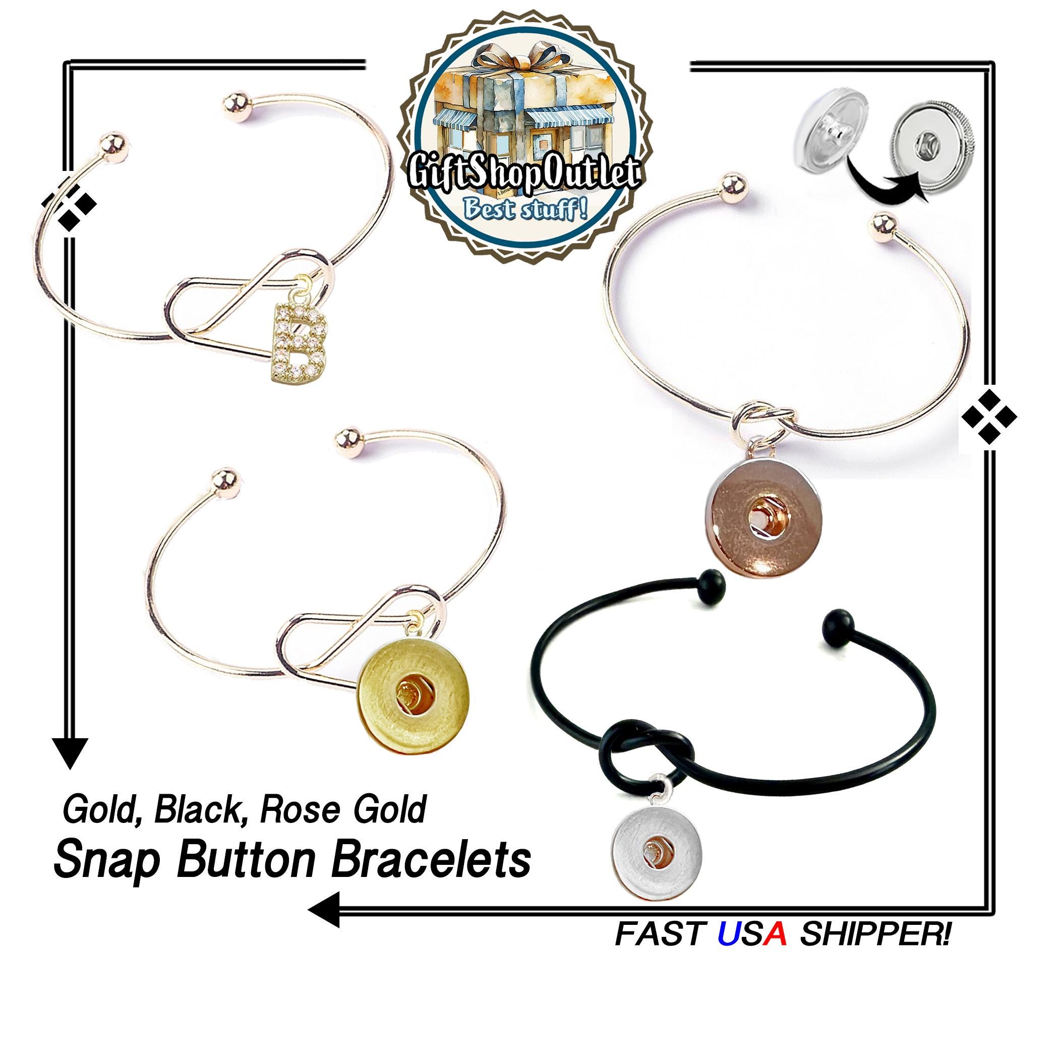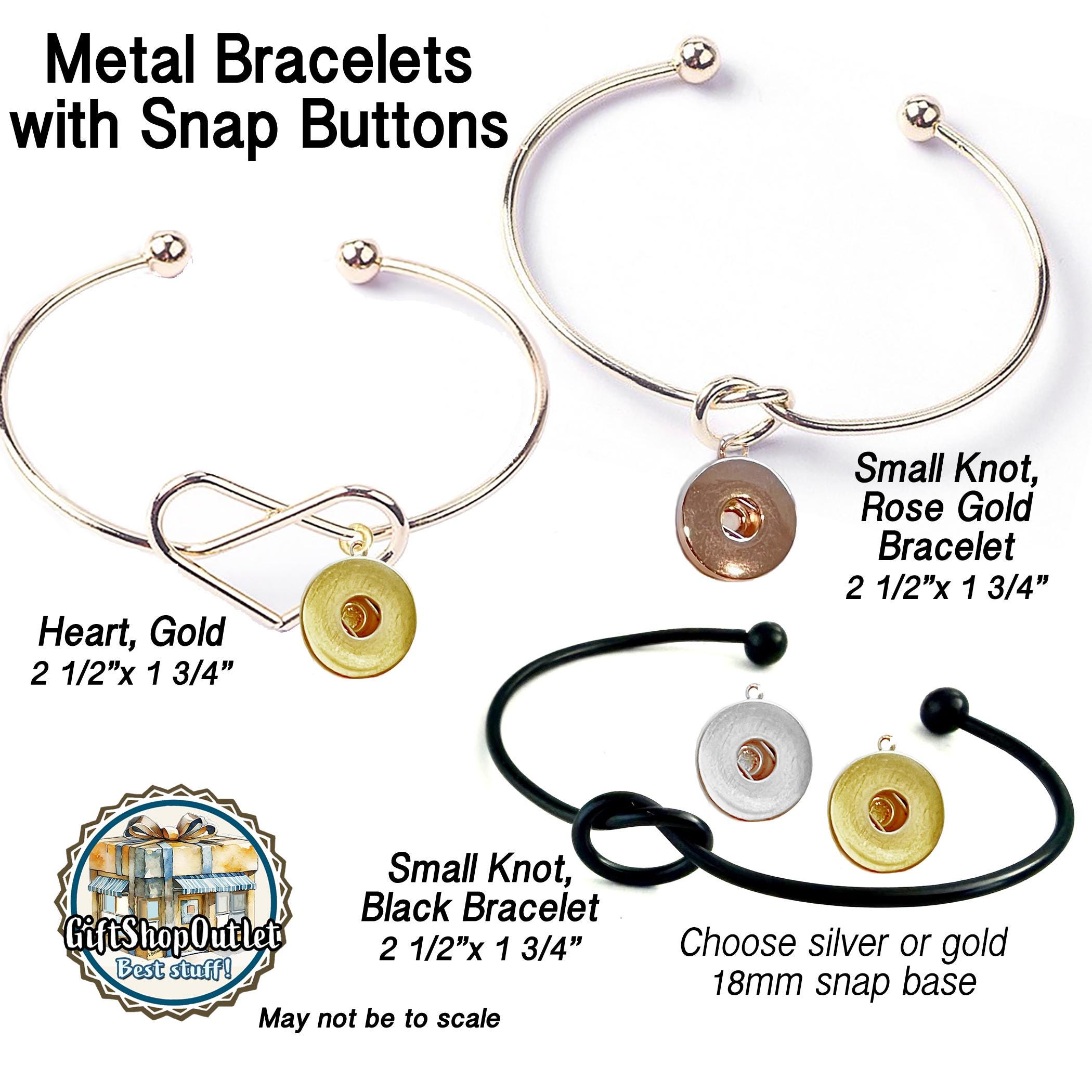 Metal alloy bracelet with 18mm dangle snap button base charms