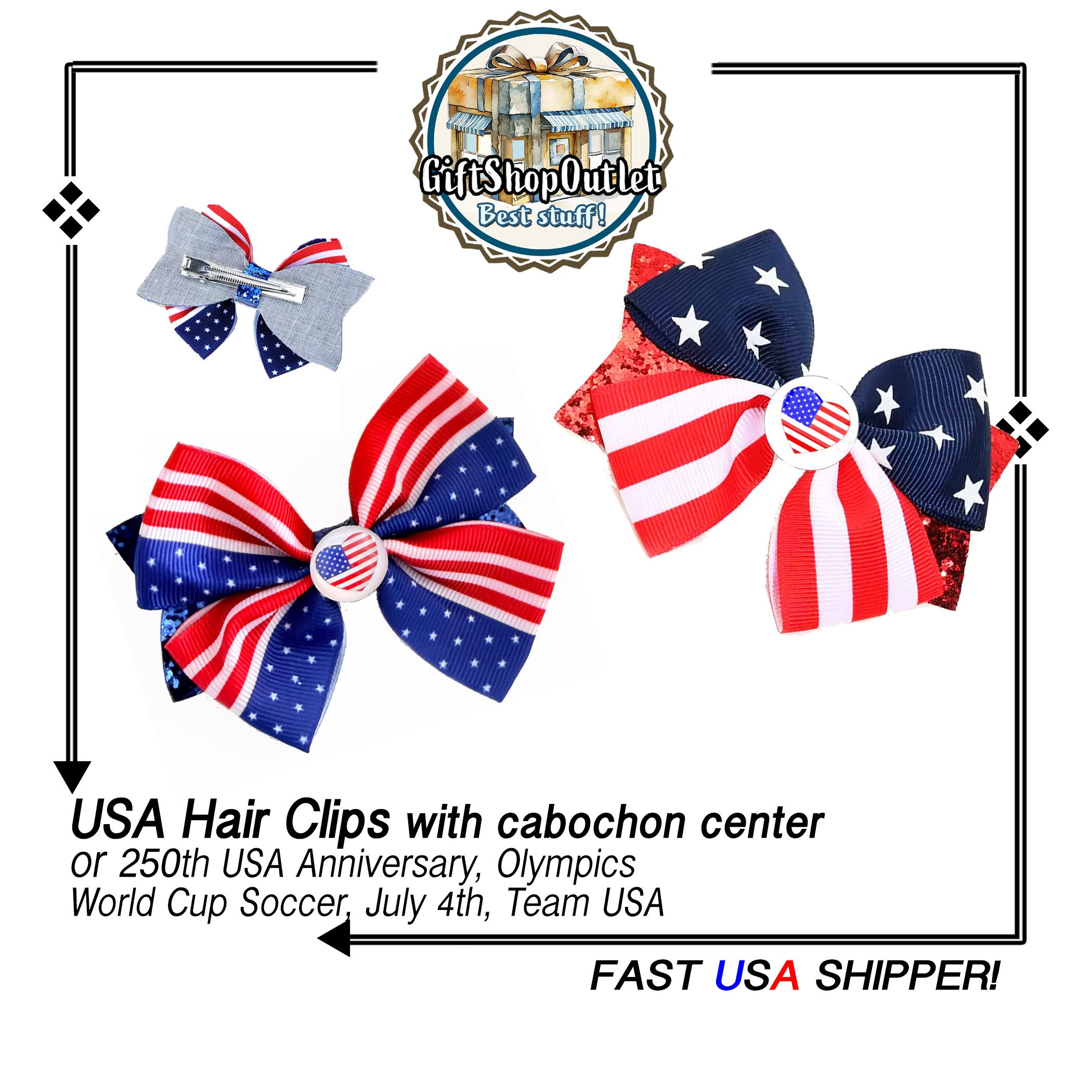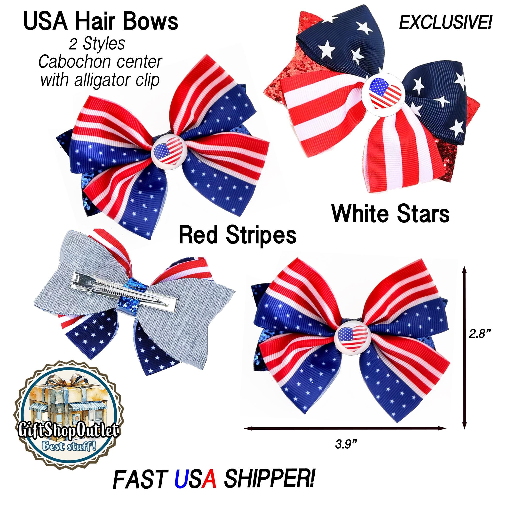 USA Hair Bows or Ties for July 4th, 250th USA Anniversary, Team USA, World Cup Soccer, Olympics, Patriotism; #July4HairTie, #USABow,#TeamUSA