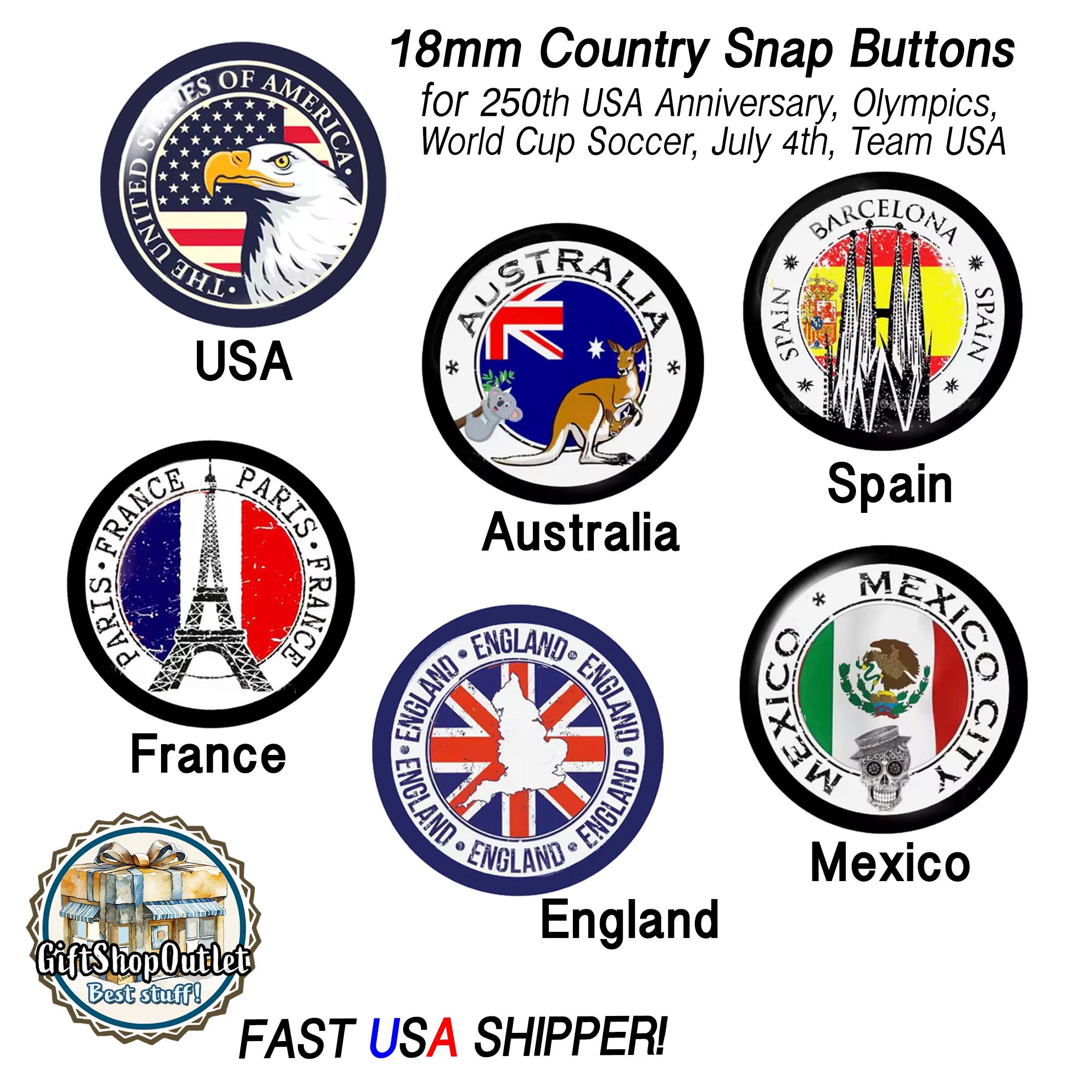 Celebrate the different countries in the FIFA World Cup and the Olympics! 18mm Snap Buttons fir 18mm jewelry