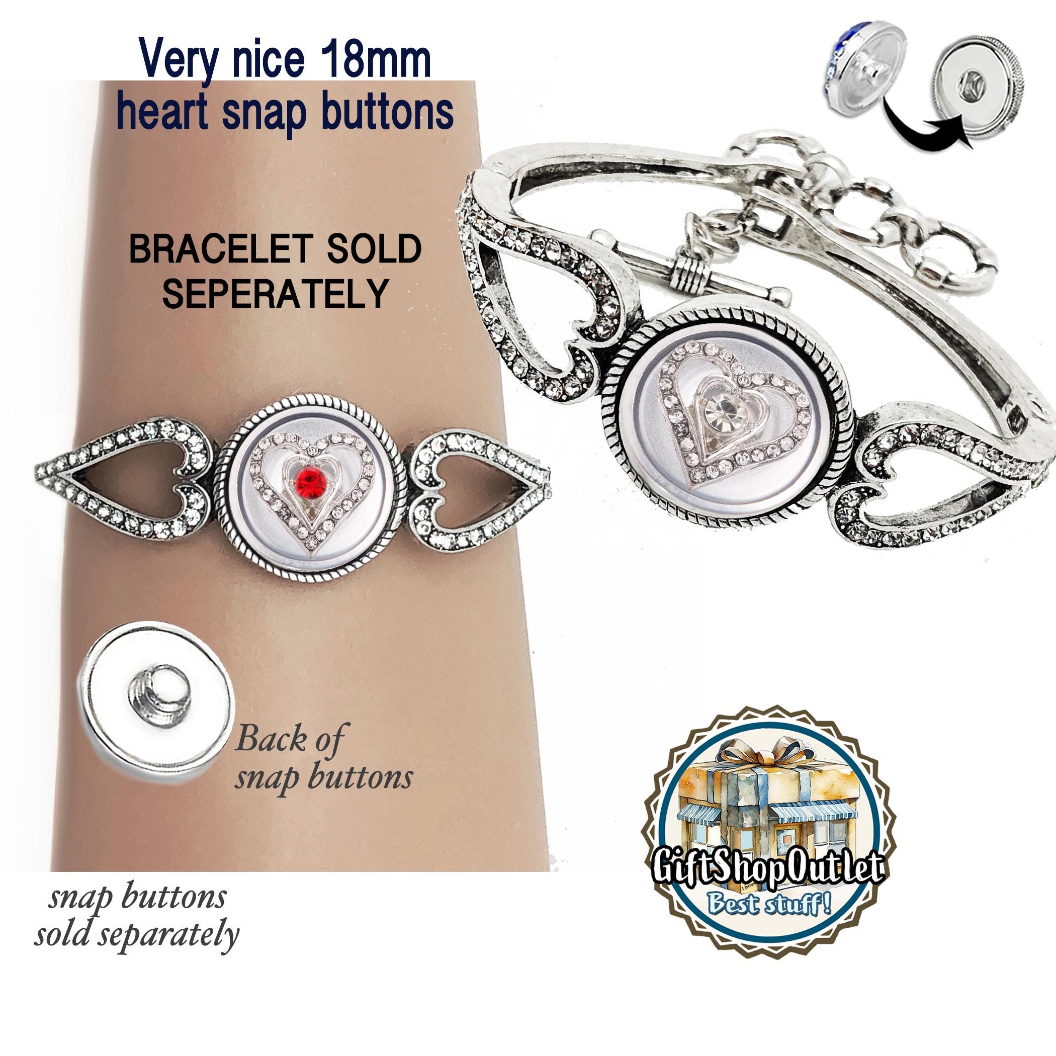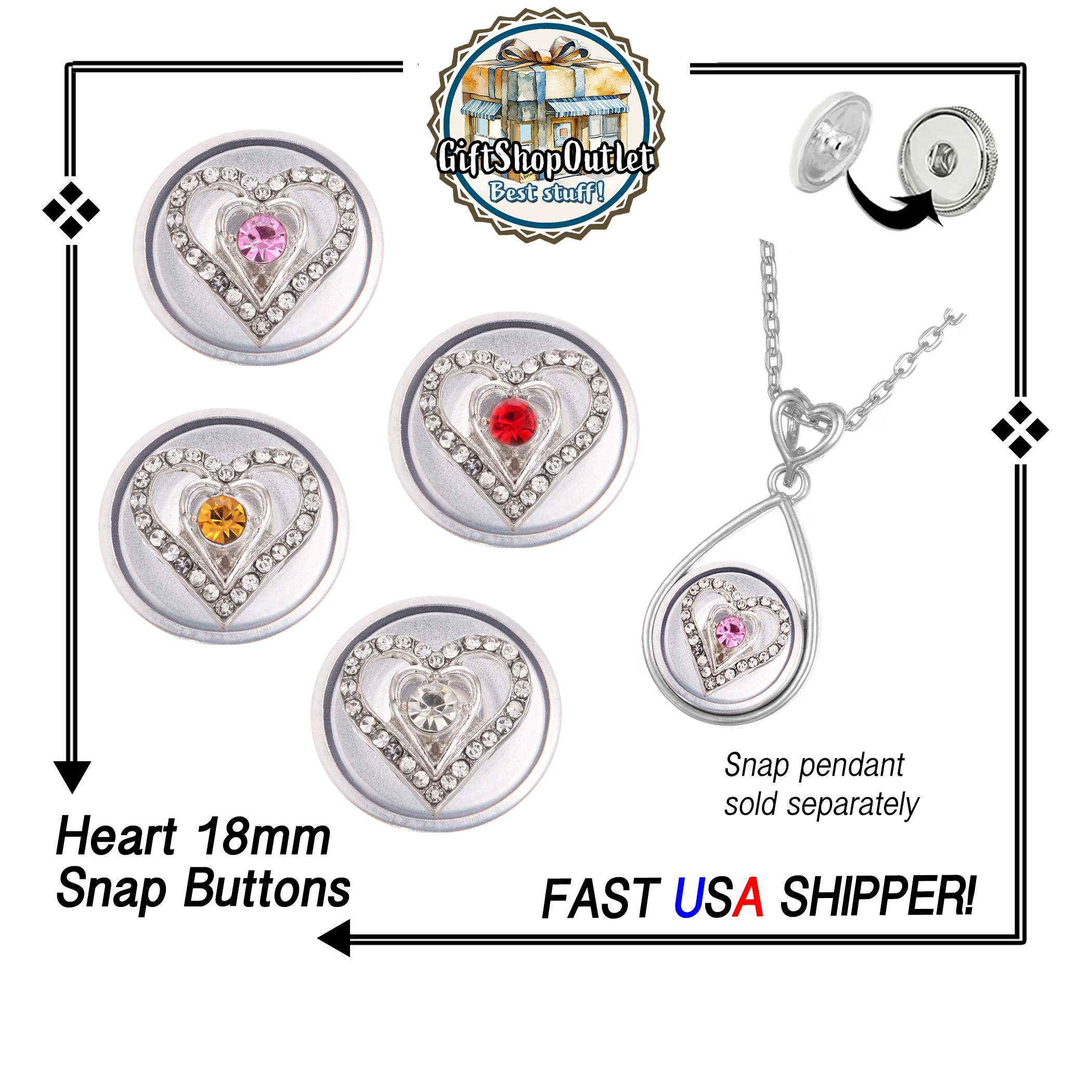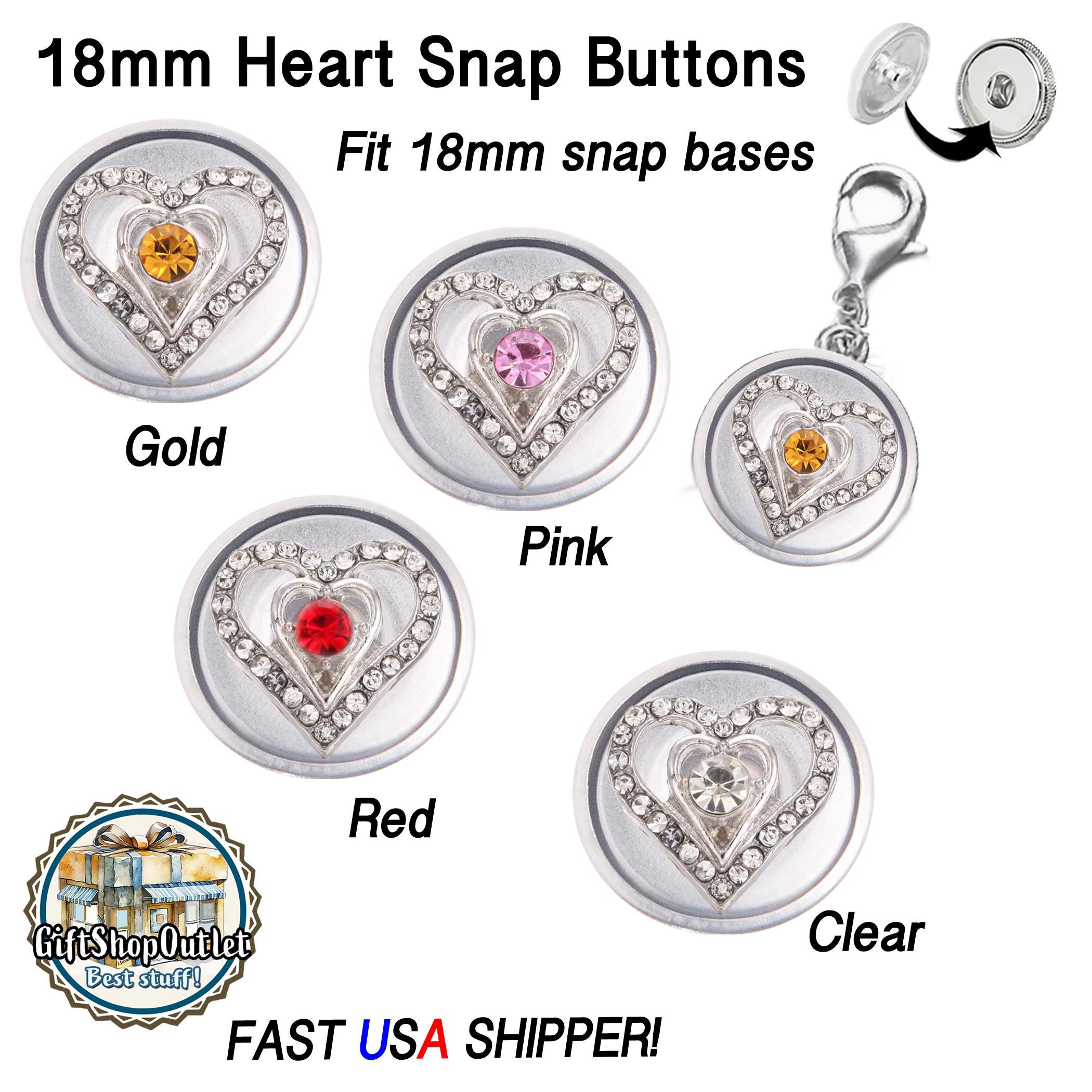 18mm RHINESTONE HEART snap buttons for snap button jewelry, Ginger snaps (not for sew on to clothing)