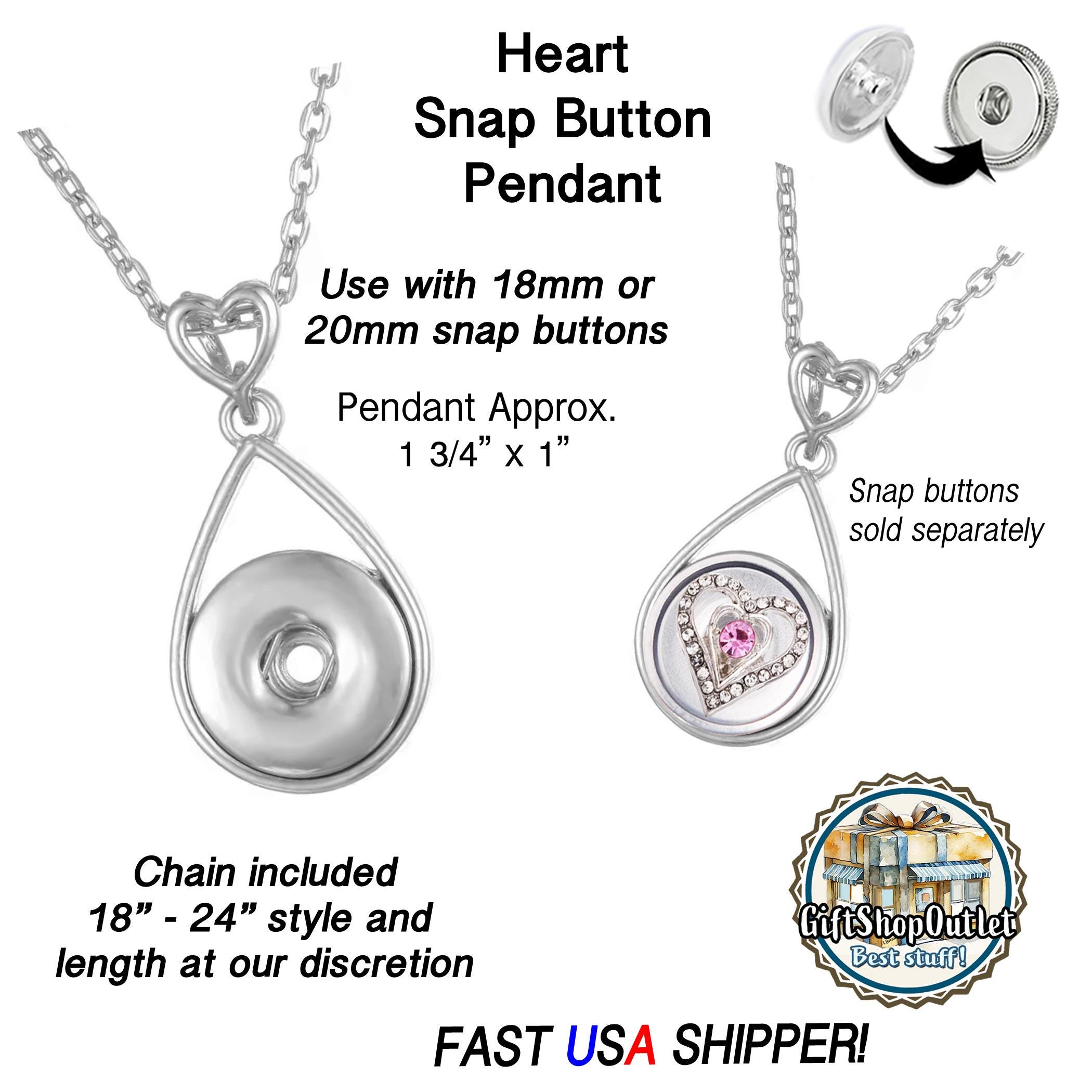 Nice, simple heart snap button pendant in a cute design - well made that works with 18mm and 20mm snap buttons, snap button jewelry, Ginger snaps and Switchable Snaps