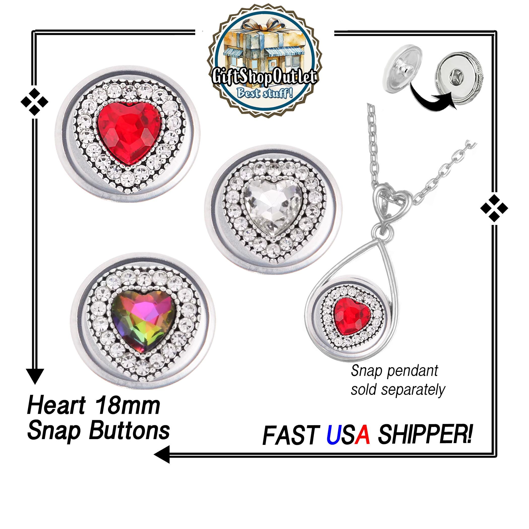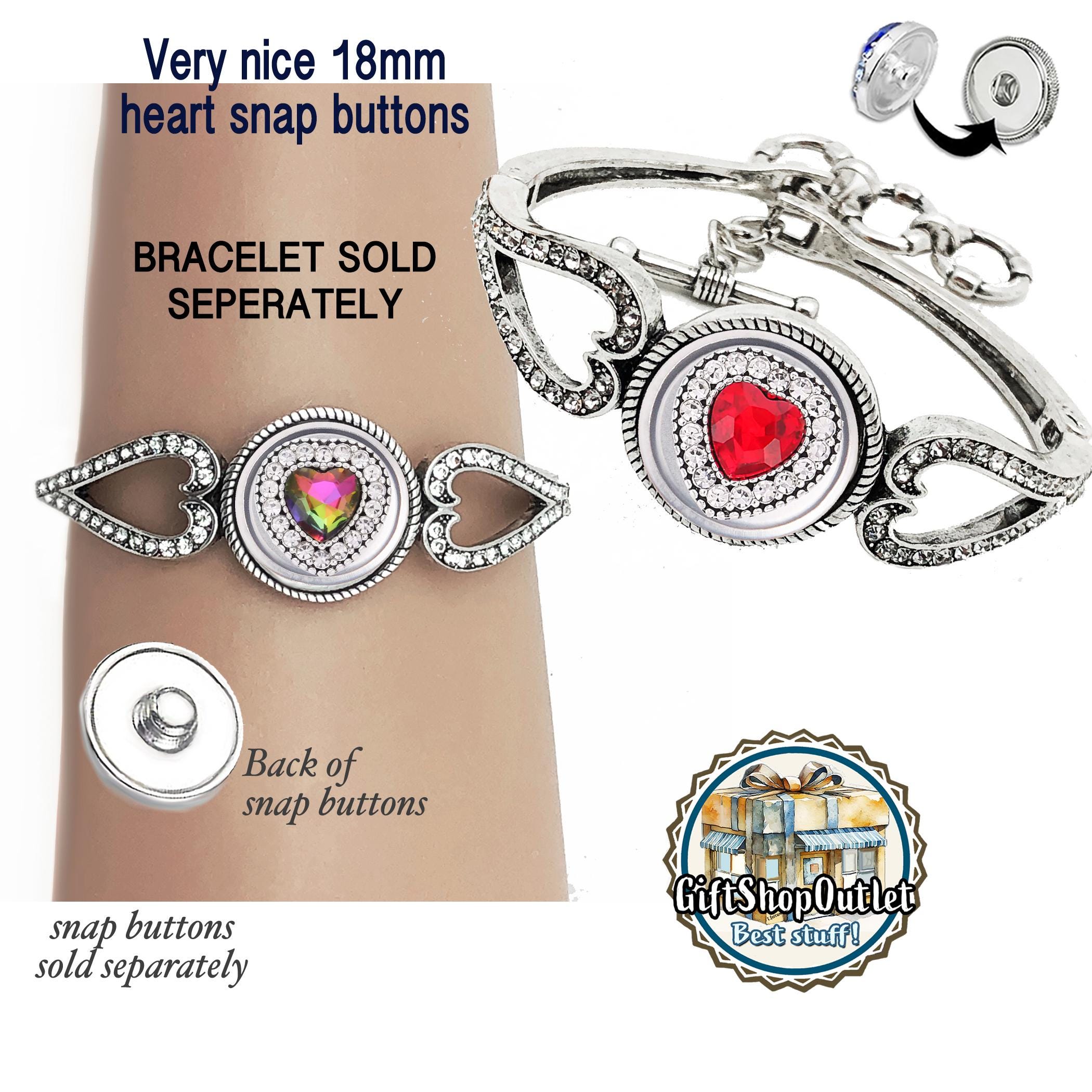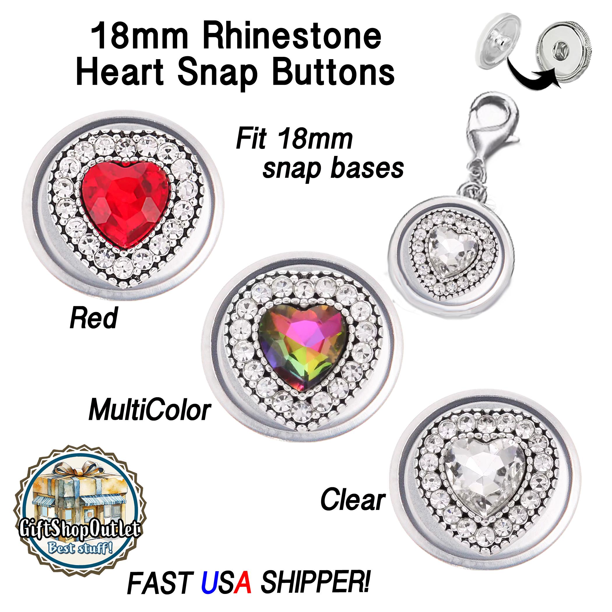 ONLY OURS! 18mm RHINESTONE HEART snap buttons for snap button jewelry, Ginger snaps (not for sew on to clothing)