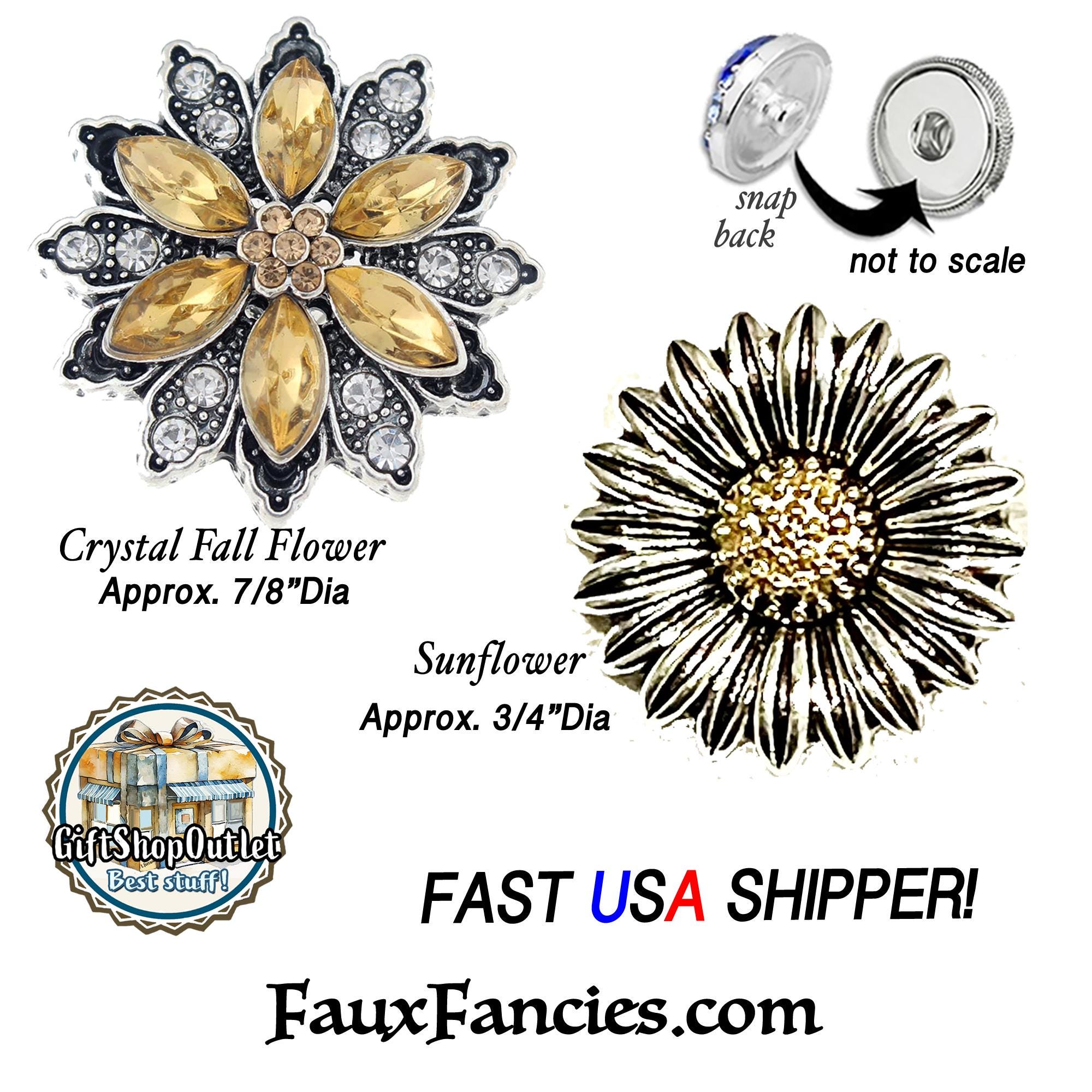 Well made snap buttons with rhinestones and crystals to fit 18mm or 20mm Interchangeable snap bases. (Not sew on for clothing)