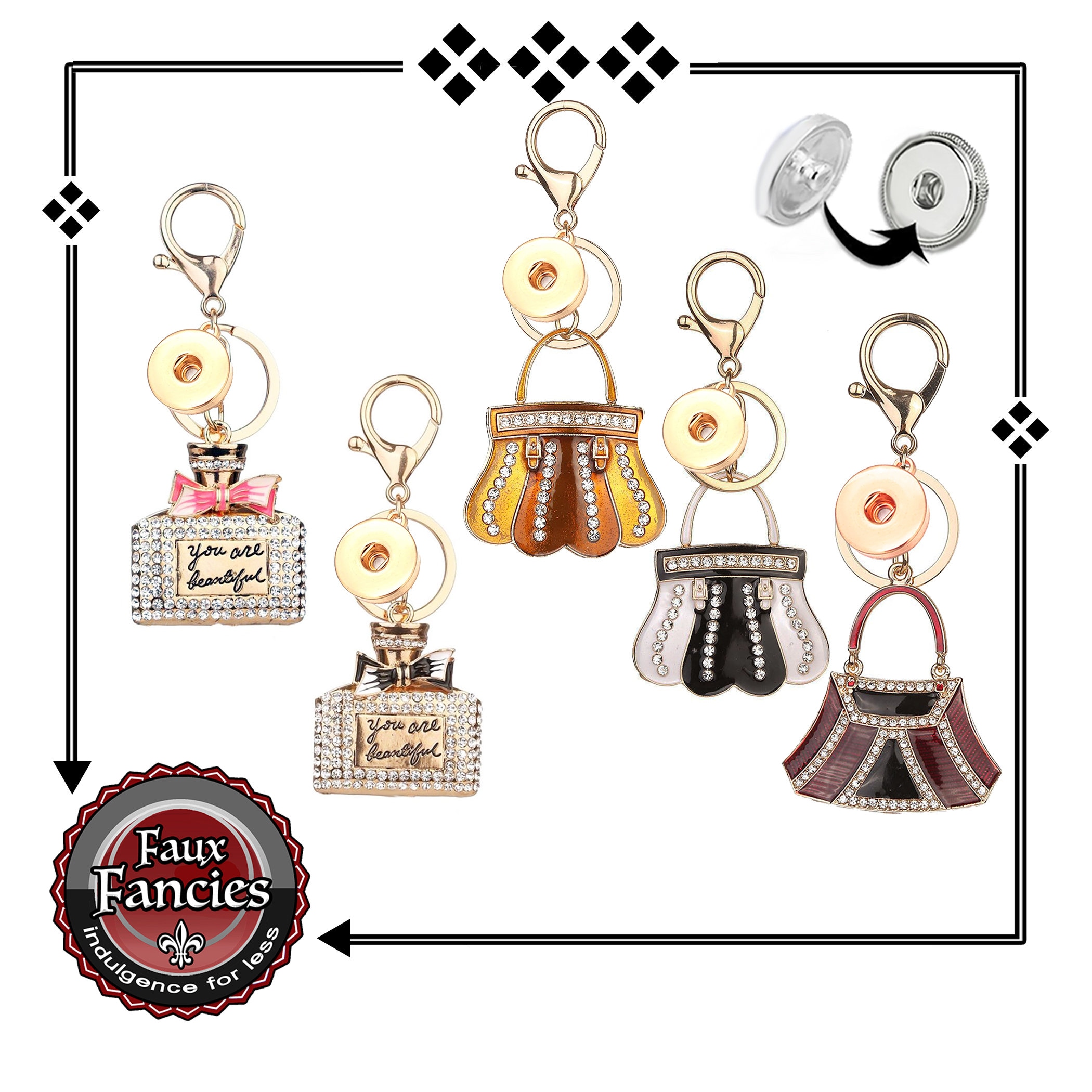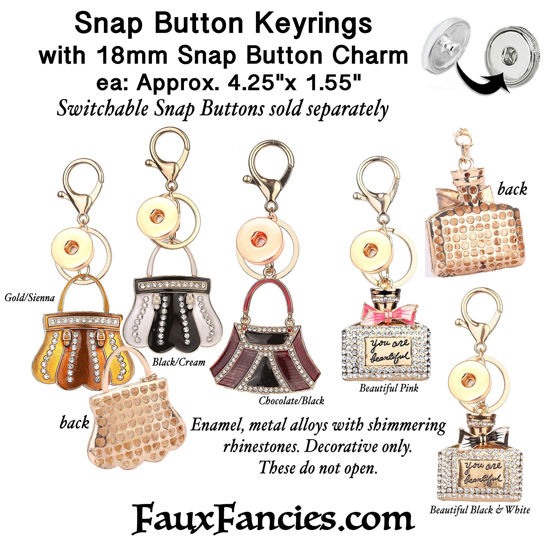 Well made, GORGEOUS Rhinestone KEYRINGS - very beautiful GREAT KEY RINGS with 18mm snap base for Switchable Snap Buttons, Ginger Snaps, Snap Charms