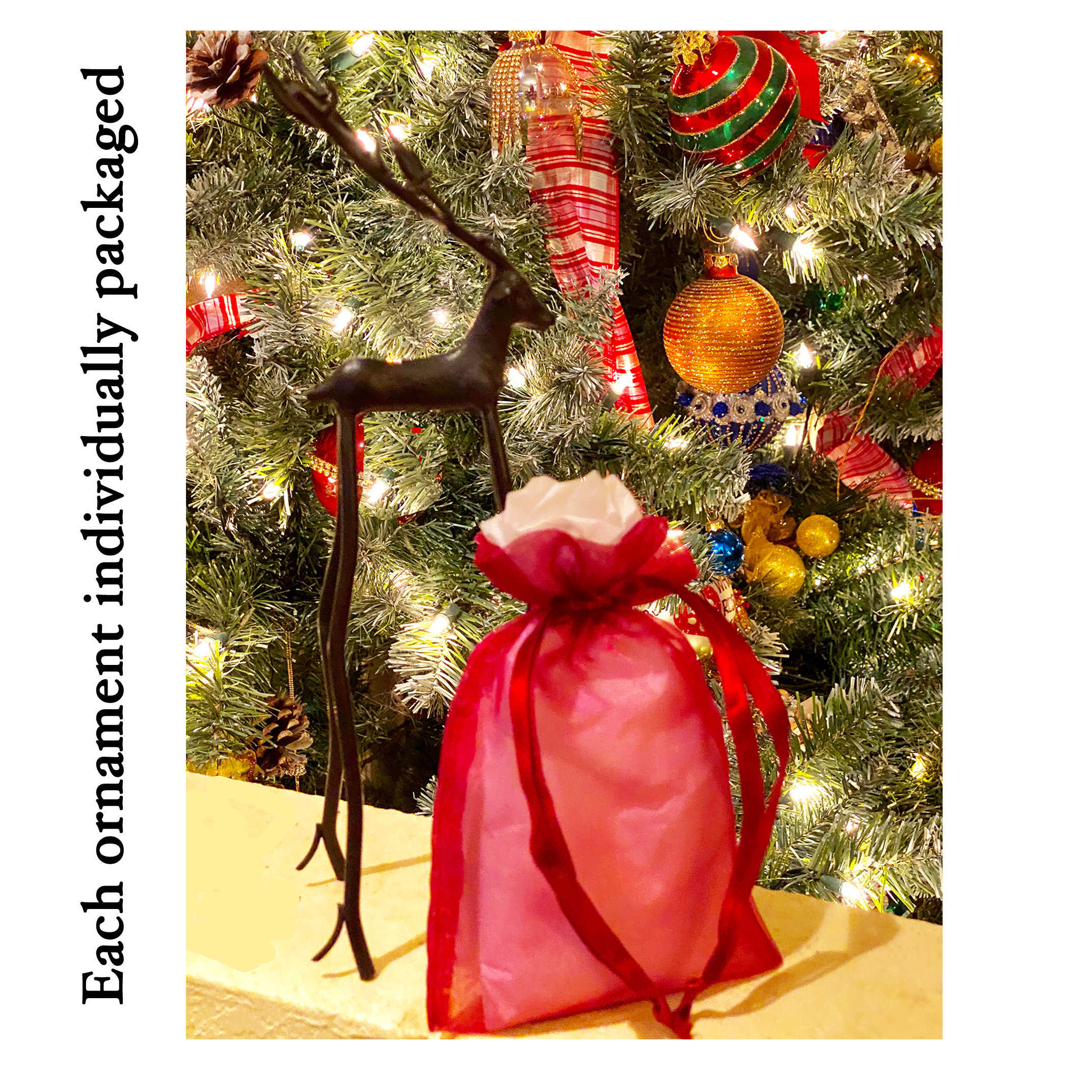 Each is tissue wrapped in gift bag and includes coordinating silver or gold twine hanger.